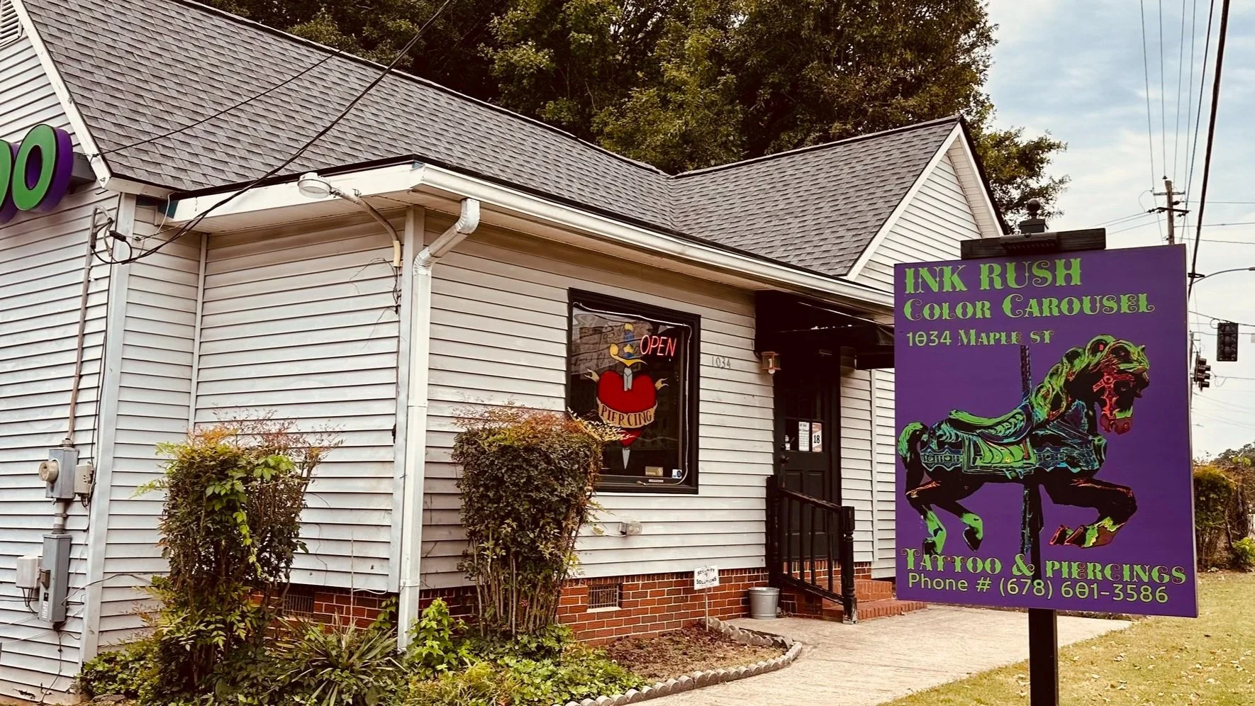 Located less than one mile from downtown Adamson Square in Carrollton, Georgia. We opened our doors in 1998 and have served this town with great tattoo + body piercing needs ever since.